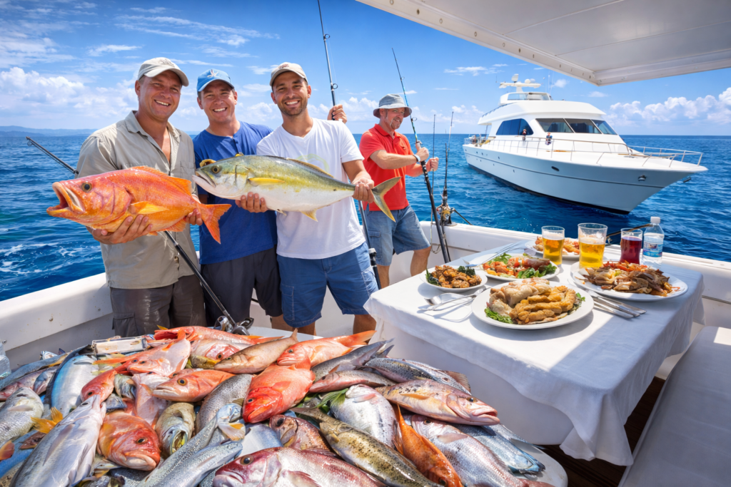 • капитан отвезет Вас на лучшие места для рыбалки в Хургаде, удочки, донка и прикорм включены;