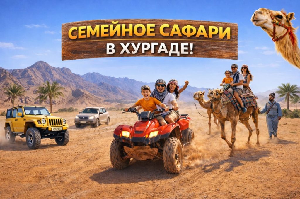 Семейное сафари из Хургады — Если вы отдыхаете в Хургаде семьей с подросшими детьми, то почему бы не взять их с собой на Семейное Сафари? Семейное Сафари — Это довольно увлекательная экскурсия для маленького путешественника. На этой экскурсии у вас с детьми будет прекрасная возможность кататься на квадроциклах и на машинах багги недалеко от Базы Сафари, где у вас будет замечательная возможность увидеть пустыню во всей ее красоте и великолепии. Семейное сафари из Хургады